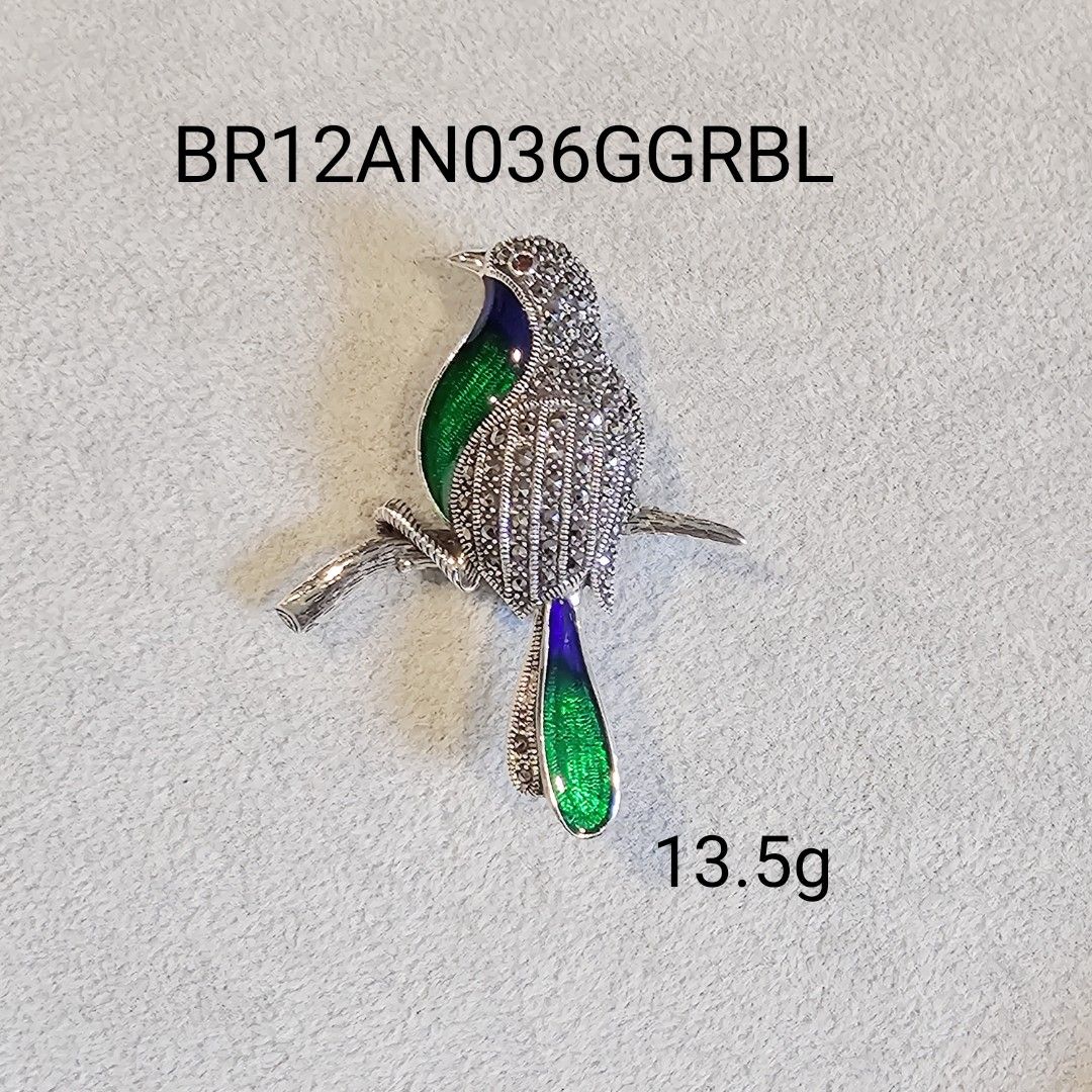 BR12AN033GGRBL - Green Blue Parrot Marcasite Brooch